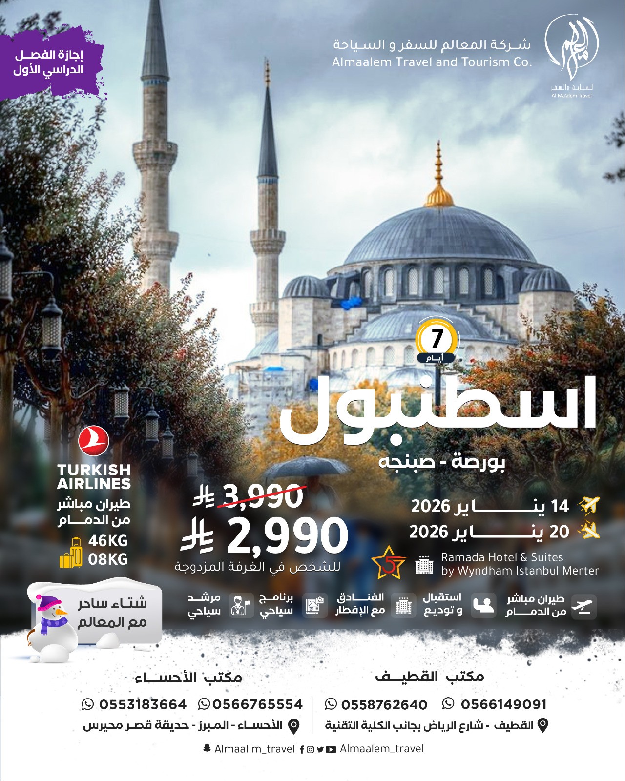 ✈️ رحلة إسطنبول – 14 يناير 2026